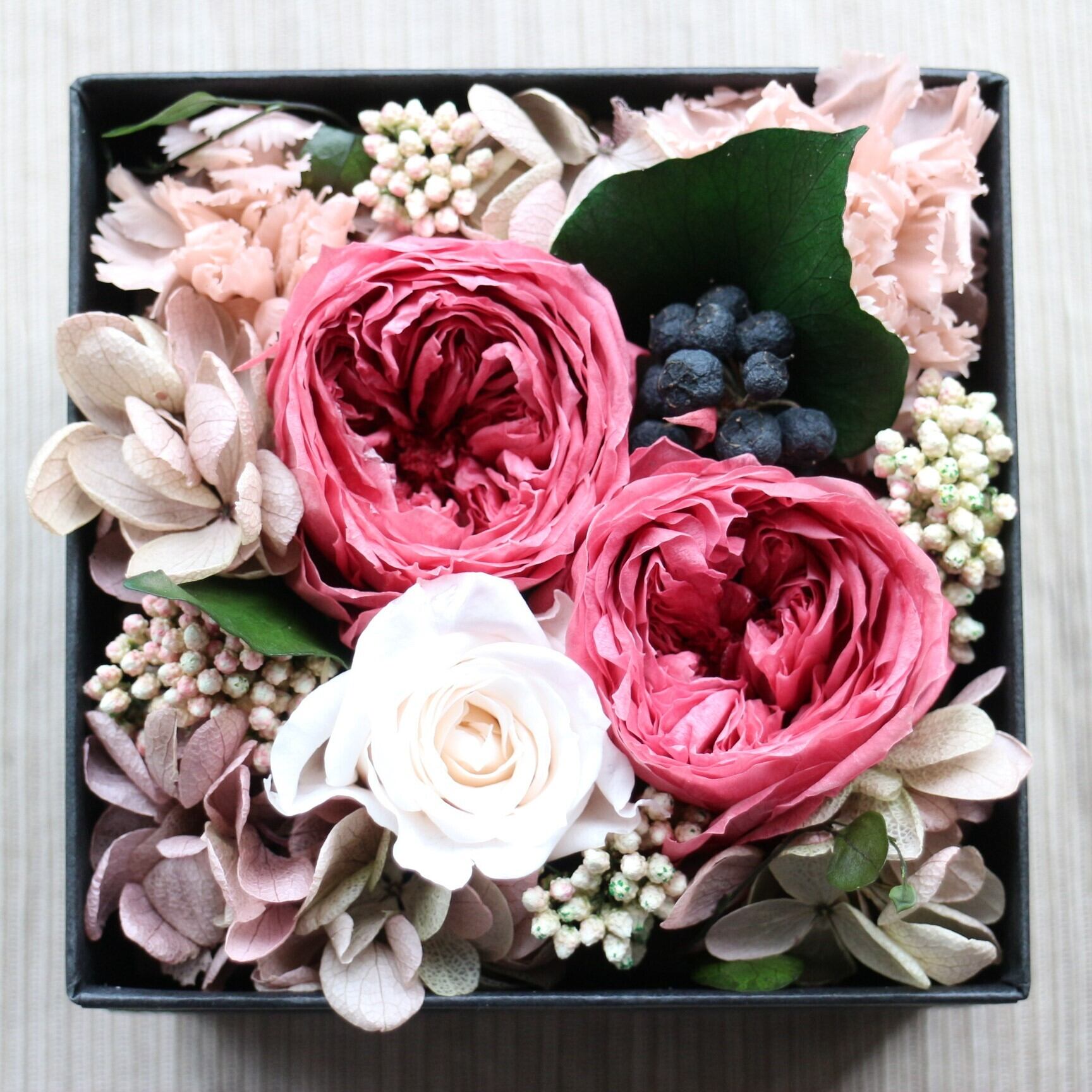 BOXフラワー ピンクベージュ /プリザーブドフラワー